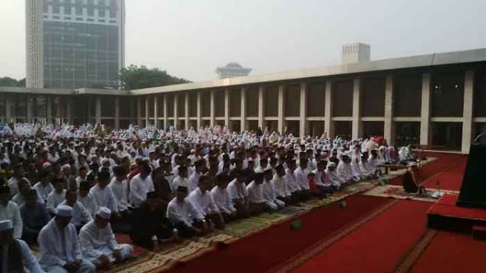 TRIBUNJOGJA.COM, JAKARTA - Wakil Presiden RI, Jusuf Kalla bersama sejumlah pejabat lainnya, melaksanakan salat Istisqa atau salat untuk memanggil hujan, di lapangan bagian dalam masjid Istiqlal, Jakarta Pusat, Minggu (1/11/2015).