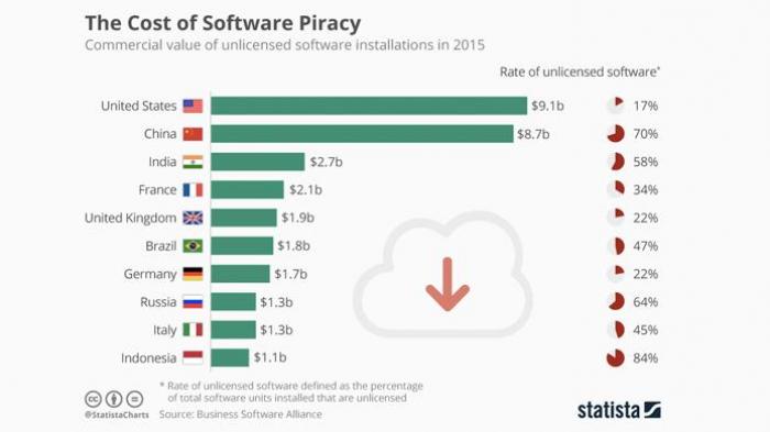 Sebagaimana dilansir KompasTekno dari Statista, Kamis (21/7/2016), selain melaporkan soal nilai pembajakan software di Indonesia, organisasi tersebut juga merinci hal serupa dari negara lain.