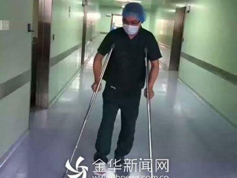 Meskipun sedang dalam kondisi sakit, dokter itu menolak untuk menunda operasi. Akhirnya selama dua jam, ia mengoperasi anak perempuan itu dengan hanya berdiri di atas satu kaki.