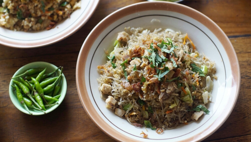 Mi yang menyerupai bihun tetapi dengan tampilan lebih kusam tersebut diolah menjadi berbagai menu.