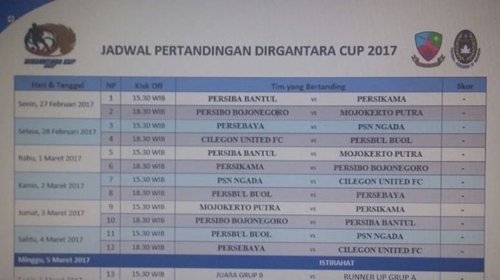Sementara hari kedua, atau Selasa (28/2/2017) akan mempertemukan Persebaya Surabaya dan PSN Ngada pada laga pertama. Sementara untuk laga kedua mempertemukan Cilegon United FC dan Persibul Buol.