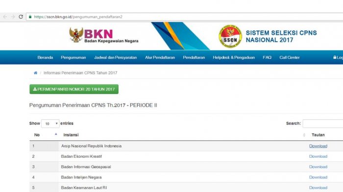 Website Ini untuk Mengunduh File PDF Lengkap Pendaftaran CPNS 2017