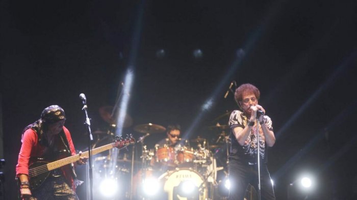 Godbless tampil dalam festival musik JogjaRockarta di Stadion Kridosono, Jumat (29/9/2017).