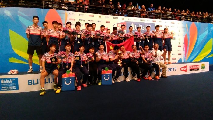 TRIBUNJOGJA.COM, YOGYA - Tunggal putri Tiongkok Han Yue berhasil membawa Tiongkok juara di Final beregu Blibli.com Yonex Sunrise BWF World Junior Championships 2017 digelar siang ini di GOR Amongrogo setelah Tiongkok mengandaskan perlawanan Malaysia dengan skor 3-1, Sabtu (14/10/2017).