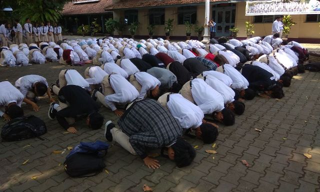 Ratusan siswa SMAN 3 Yogyakarta sujud syukur di lapangan usai pengumuman kelulusan tingkat SMA.