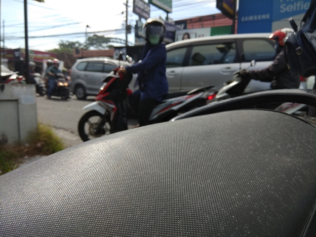 Pantauan di lokasi, langit terlihat mendung, dan kendaraan yang melintas dari arah jalan kaliurang menuju kota Yogya tampak dipenuhi abu bagian atasnya.