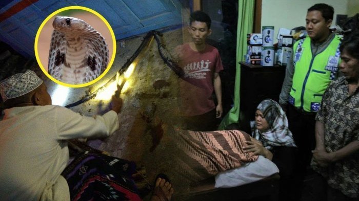 Ibu rumah tangga bernama Siti Fatimah meninggal karena digigit ular king kobra sebesar lengan orang dewasa dengan panjang 2,5 meter