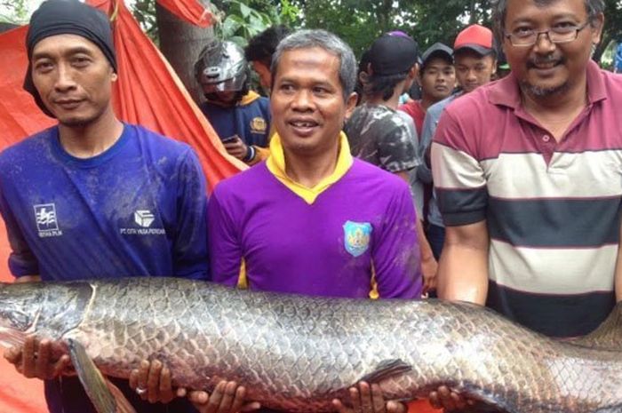 TRIBUNJOGJA.com, SURABAYA - Selama empat hari terakhir sejak Senin (24/6/2018) hingga Kamis (28/6/2018) sore, tercatat sudah ada 13 ikan Arapaima Gigas yang ditangkap warga di sepanjang aliran Sungai Brantas. Sebanyak tiga ekor di antaranya dikonsumsi warga.