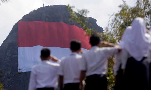 Pengibaran Bendera Merah Putih raksasa ini dilakukan dalam rangka memperingati HUT Kemerdekaan ke-73 Republik Indonesia. (*)