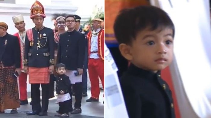 Saat upacara Hari Kemerdekaan ke-73 itu, putra Gibran Rakabuming dan Selvi Ananda ini tampil memakai baju adat.