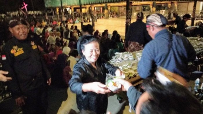 TRIBUNJOGJA.COM - Ritual Mubeng Beteng di Keben, Keraton Yogyakarta pada Selasa (11/09/2018) turut diisi dengan pembagian nasi gurih untuk warga yang hadir.