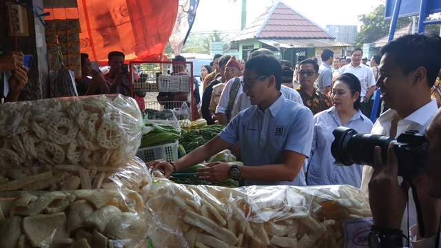 Kedatangan Sandi ke pasar tradisional ini ditemani oleh anggota DPR RI, Andika Pandu Puragabaya.