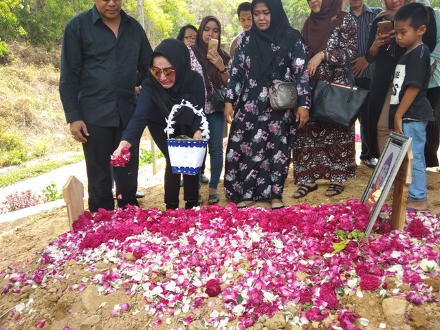 Roro tiba sekira pukul 12.25 Wib di lokasi pemakaman setelah prosesi pemakaman usai.