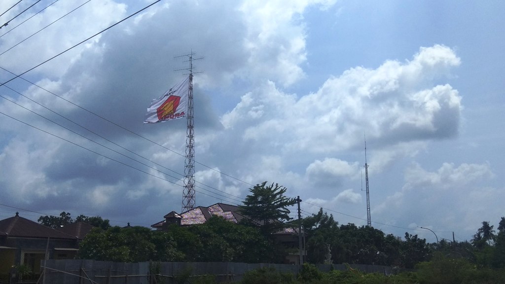 Loyalitas itu dibuktikan dengan memasang bendera partai berlambang kepala Garuda di atas tower.