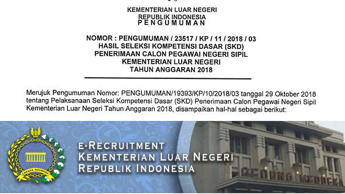 Pengumuman Peserta SKB CPNS Kemenlu 2018 Data e-cpns.kemlu.go.id, Cek Namamu Disini