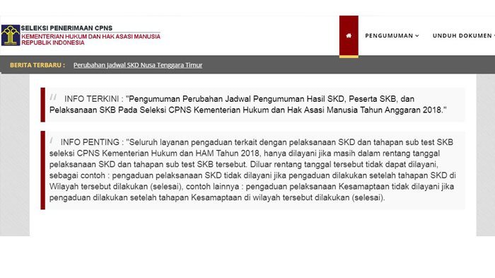 Website cpns.kemenkumham.go.id error Pengumuman hasil Seleksi Kompetensi Dasar (SKD) dan pelaksanaan Seleksi Kompetensi Bidang