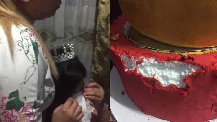 Kue yang datang hanyalah kue palsu yang terbuat dari busa gabus.