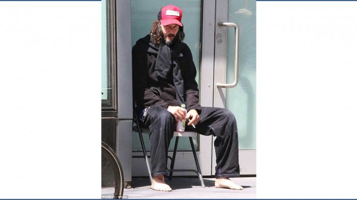 Keanu Reeves Bikin Pangling, Rambut Gondrong, Tanpa Alas Kaki Duduk di Pinggir Jalan