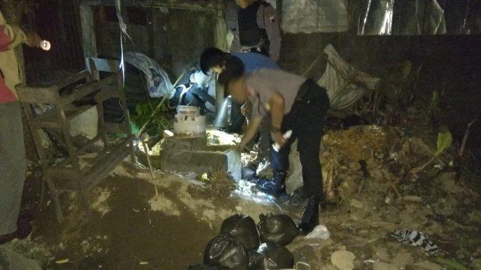 Petugas mencurigai sebuah bangunan di belakang bengkel di Wonolelo, Muntilan.