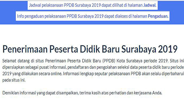 TRIBUNJOGJA.COM Surabaya - Pendaftaran PPDB SMP di Surabaya saat ini memasuki tahapan pendaftaran jalur perpindahan tugas orang tua yang dibuka hari ini, Senin (10/6/2019).