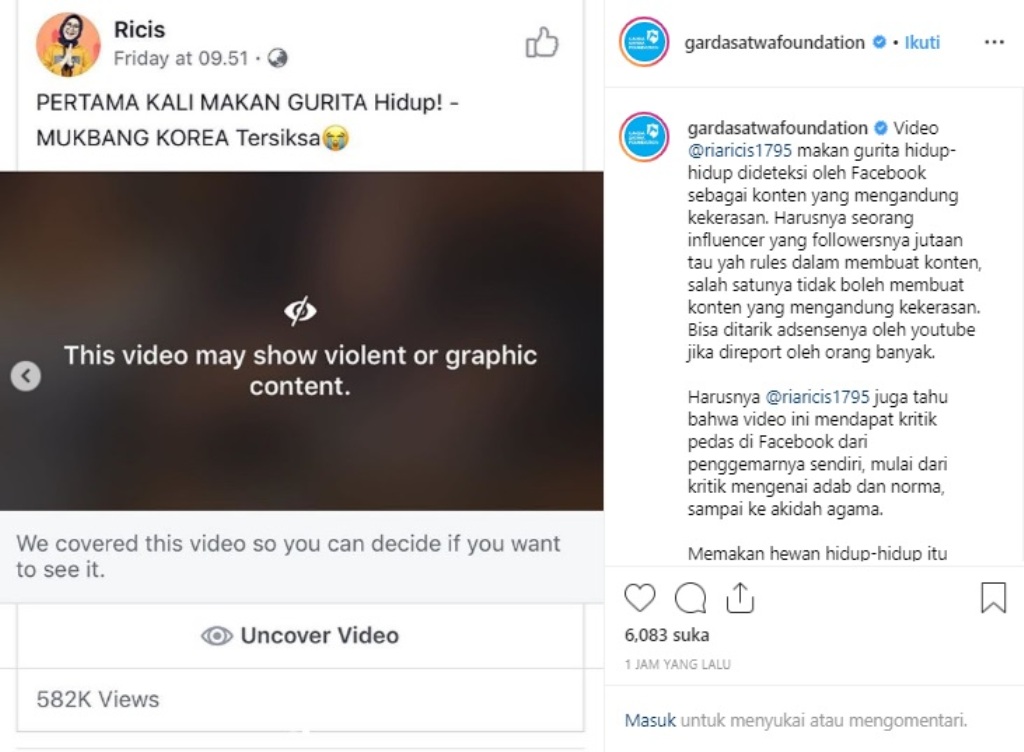 Dalam video tersebut akun Garda Satwa mengecam video vlog Ria Ricis di Facebook.