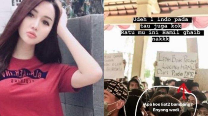 Lucinta Luna mengunggah Instastory demo mahasiswa yang mengkaitkan dirinya. Di Instastory dia mengunggah tiga foto poster lucu mengkaitkan Lucinta.
