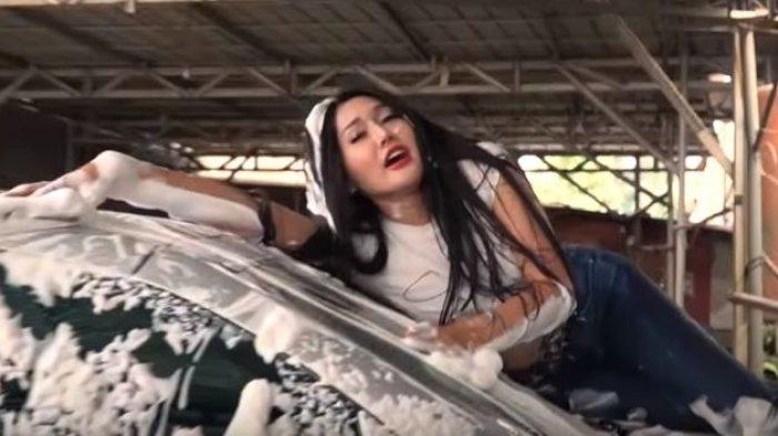 Kelakuan Lucinta Luna Mencuci Mobil Sendiri, Terjatuh ke Lantai Hingga Naik Atap Mobil