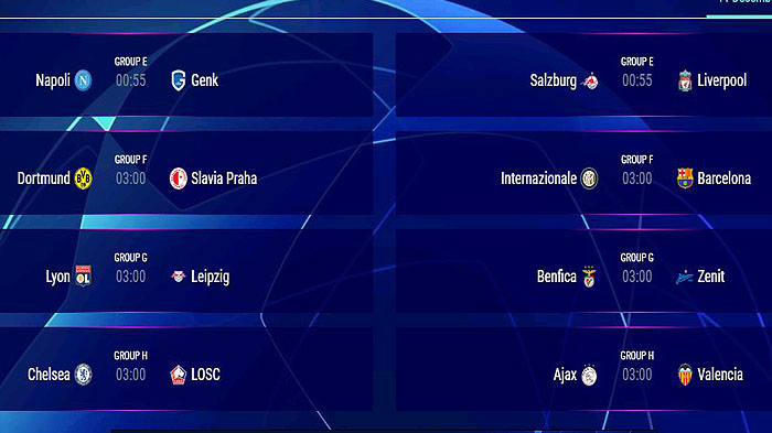 Jadwal Liga Champions Matchday 6 akan dimulai pada Rabu-Kamis 11-12Desember 2019 adalah Napoli vs Genk pukul 00.55 WIB Inter Milan vs Barcelona