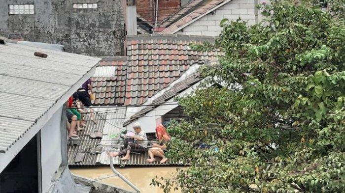 Sejumlah warga yang tinggal di Villa Nusa Indah Bekasi terjebak banjir di rumah mereka hingga belasan jam