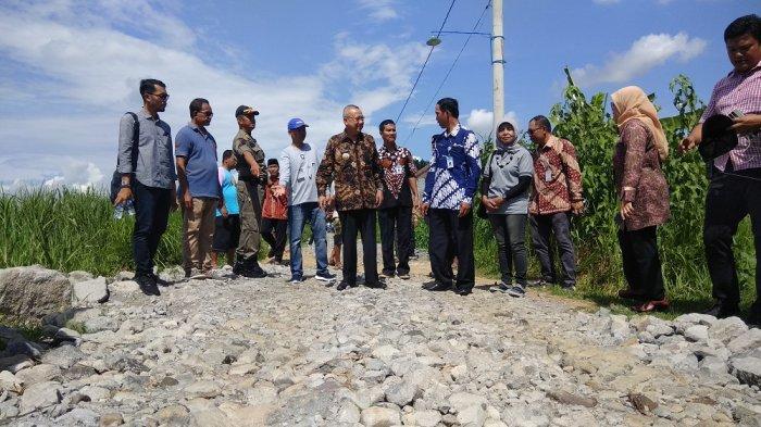 Bupati Bantul, Suharsono bersama jajarannya meninjau langsung kondisi jalan rusak di kampung Donotirto.