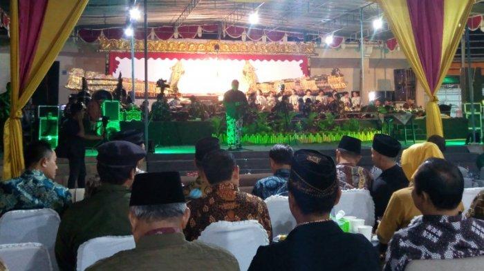 Pementasan wayang kulit dilaksanakan di lapangan parkir SKE, Minggu (23/2/2020).