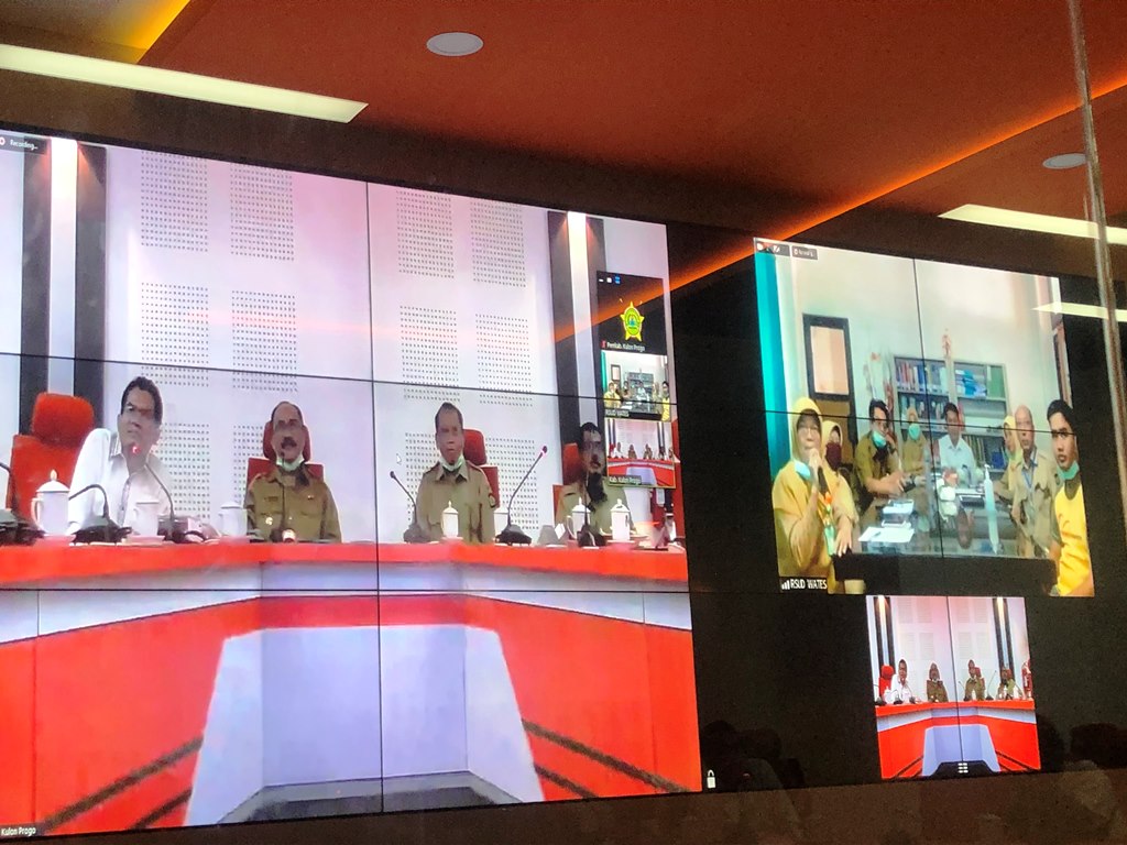 “Terima kasih atas kerja keras tim medis sekalian, dan semoga bencana covid ini segera berakhir,” sapa Bupati, sesaat setelah membuka percakapan melalui teleconference.