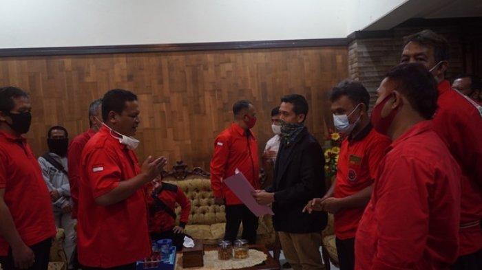 TRIBUNJOGJA.COM, MAGELANG - Ratusan kader dari DPC PDI Perjuangan Kota Magelang beserta organisasi kepemudaan BMI, Taruna Merah Putih dan Komunitas Juang mendatangi Mapolres Magelang Kota, Kamis (25/6/2020) malam.