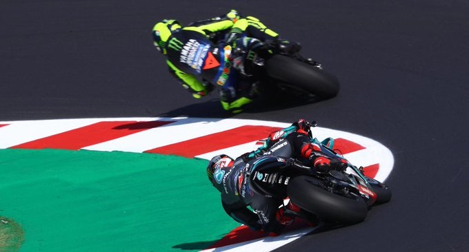 Empat baris terdepan starting grid balapan MotoGP San Marino yang akan digelar Minggu (13/9/2020) petang ini, secara berurutan dikuasai Maverick Vinales, Franco Morbidelli, Franco Morbidelli, dan Valentino Rossi.