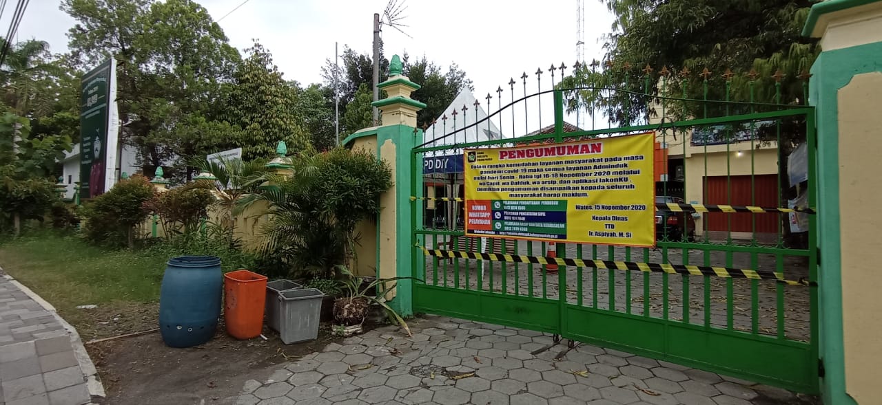 Kantor Dinas Kependudukan dan pencatatan Sipil Kabupaten Kulon Progo ditutup sementara selama tiga hari mulai Senin (16/11/2020)
