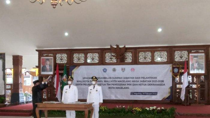 TRIBUNJOGJA.COM, KOTA MAGELANG - Muchammad Nur Aziz dan M Mansyur (Aziz-Mansyur) resmi menjabat sebagai Wali Kota dan Wakil Wali Kota Magelang masa jabatan 2021-2026.