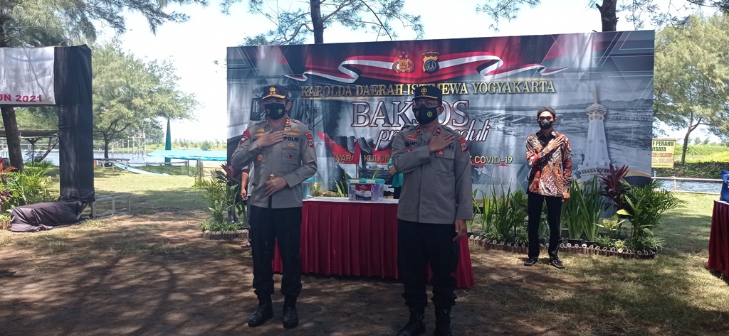 TRIBUNJOGJA.COM, KULON PROGO - Sebanyak 300 paket sembako disalurkan oleh Polda DIY kepada masyarakat yang terdampak pandemi Covid-19 di Laguna Pantai Glagah, Temon, Kabupaten Kulon Progo, Rabu (8/9/2021).