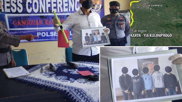 Kepolisian Sektor Mlati menangkap lima remaja, masing-masing berinisial FS, TW, AVM, FRB, dan RA, semuanya warga Kasihan, Bantul