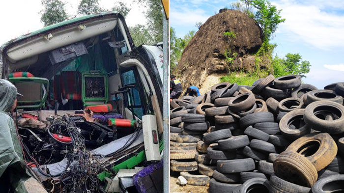 Tribunjogja.com Bantul - Setelah insiden kecelakaan maut bus pariwisata dari Sukoharjo, Surakarta ada pemandangan yang berbeda di sekitar lokasi kejadian, Selasa (8/2/2022). Untuk sementara ada ratusan ban bekas namun ditargetkan menjadi 1000 ban bekas.