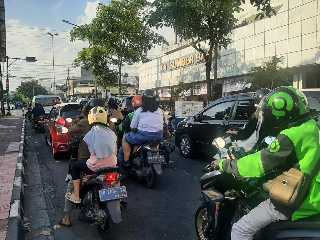 Di simpang Jalan Mataram misalnya, pada Minggu (14/5/2022) siang kemarin volume kendaraan yang melaju dari simpang empat Jalan Panembagan Senopati sangatlah tinggi.