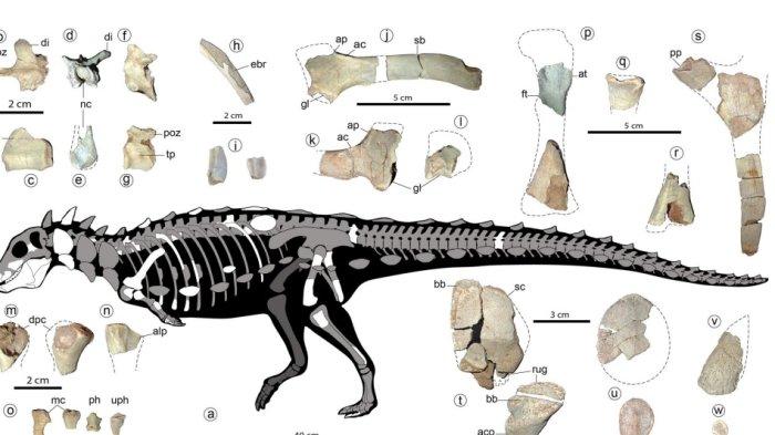 Makhluk ini masuk kelompok dinosaurus thyreophoran, yang dikenal memiliki pelat punggung bertulang dan ekor runcing.