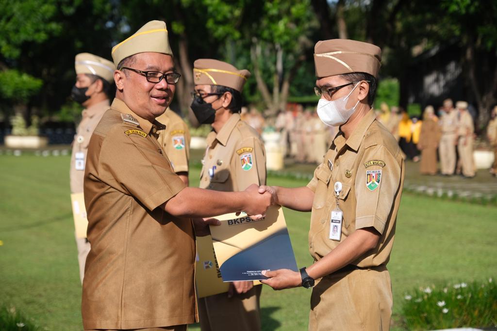 Penghargaan disampaikan langsung oleh Wali Kota Magelang dr. Muchamad Nur Aziz pada apel di halaman belakang kantor Pemkot Magelang, Senin (31/10/2022).