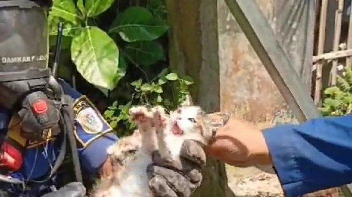 Damkar Klaten Berhasil Evakuasi Seekor Kucing Kampung yang Sudah Lima Hari Tercebur di Dalam Sumur
