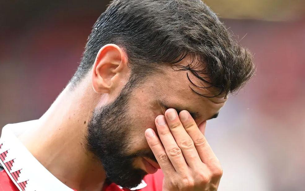 Ekspresi Bruno Fernandes setelah Manchester United tertinggal 0-2 dari Brighton di babak pertama - foto ilustrasi