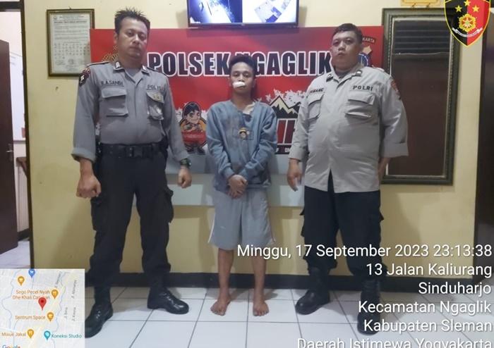 Kapolsek Ngaglik, Kompol Anjar ,Istriani melalui Panit Reskrim Polsek Ngaglik, Ipda Ys Udin Afriyanto mengatakan, penangkapan terhadap pelaku bermula ketika anggota reskrim sedang melaksanakan patroli wilayah bekerjasama dengan Bhabinkamtibmas Sariharjo.