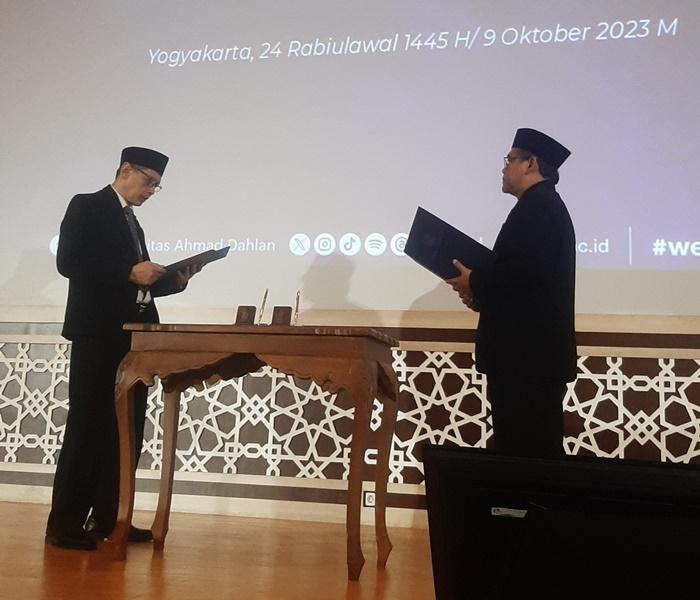 Pelantikan Prof Muchlas sebagai rektor UAD dilaksanakan pada Senin (9/10/2023) di gedung Amphitarium UAD.