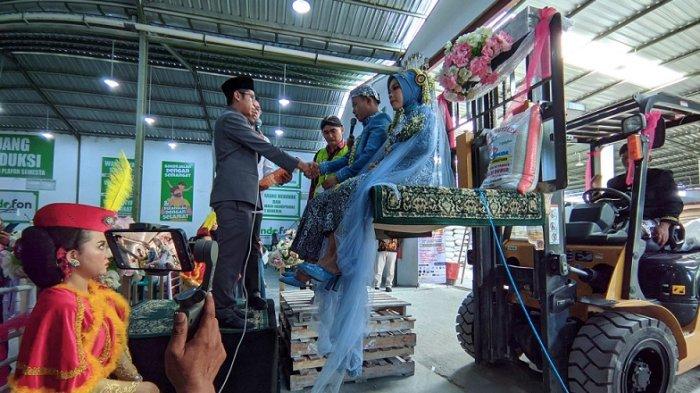 Pernikahan Unik di Kulon Progo Yogyakarta, Mempelai Ijab Kabul Naik Forklift