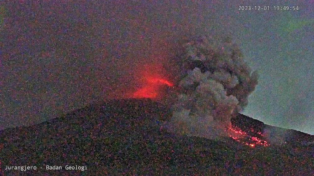 INFO terjadi awan panas guguran di Gunung Merapi hari ini 1 Desember 2023 pukul 19:47 WIB selama 132 detik. Status Gunung Merapi masih SIAGA Level 3.