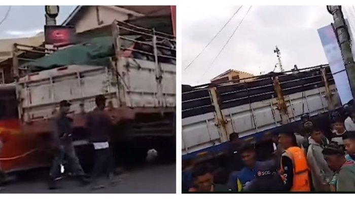 Warga sekitar langsung berhamburan mengevakuasi korban yang berada di kolong truk.