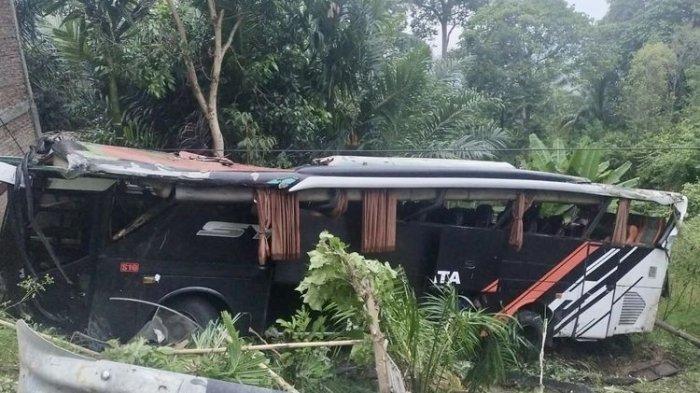 Pengemudi bus akhirnya tidak bisa mengendalikan kendaraanya hingga akhirnya masuk ke dalam jurang.